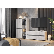 Серия «Мрия», представленная брендом BTS – это актуальная современная мебель, изготовленная на высокотехнологичном оборудовании. Стенка для гостиной Мрия BTS_N14471254 является прекрасным представителем этой коллекции. Данная модель состоит из следующих компонентов: тумба под ТВ - 1300х368х524, шкаф комбинированный - 902х372х1392, и стоит 13787 руб. Запоминающийся дизайн подчеркивается изысканностью оттенка фасада (бетон пайн светлый, графит), сделанного из прочного и практичного материала (), а матовый корпус, выполненный из , завершает образ. Перед покупкой обратите внимание на размеры.